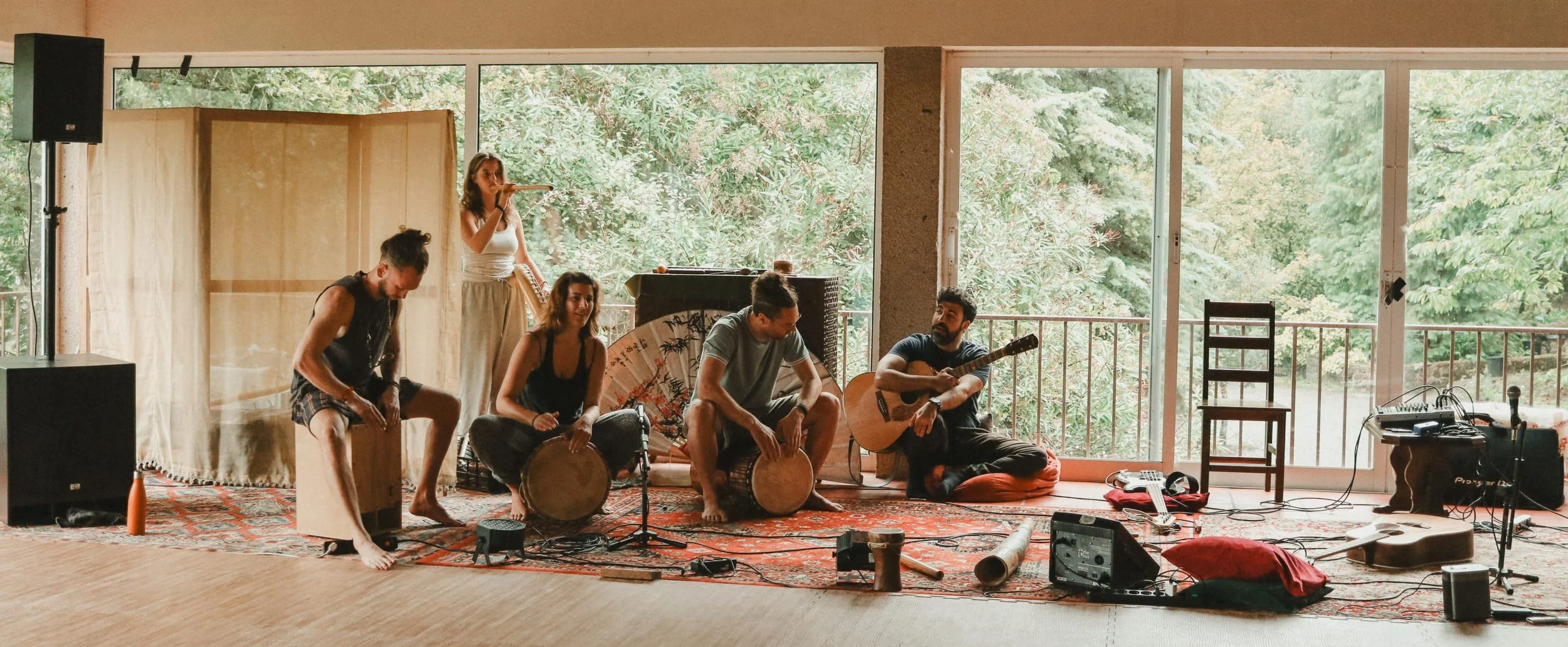 Enter stillness and move your body in the mornings. Build, play & relate in the afternoons. Then feast, sing, laugh and dance the night away.
